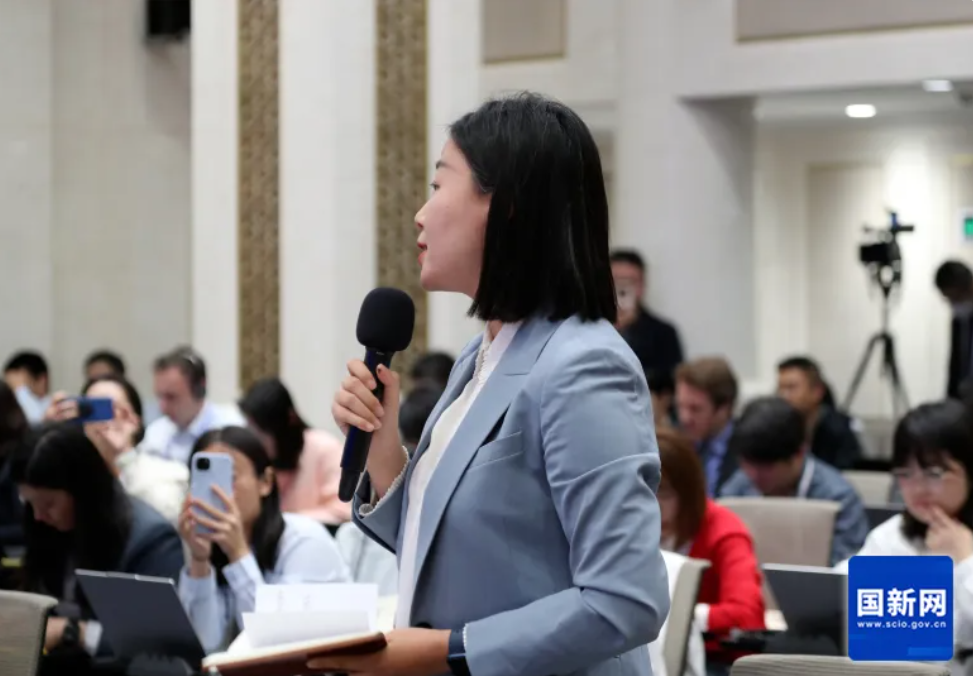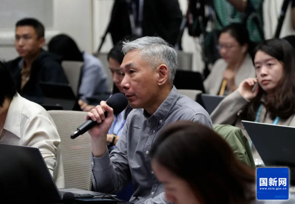 美国国际市场新闻社记者提问(赵一帆 摄)